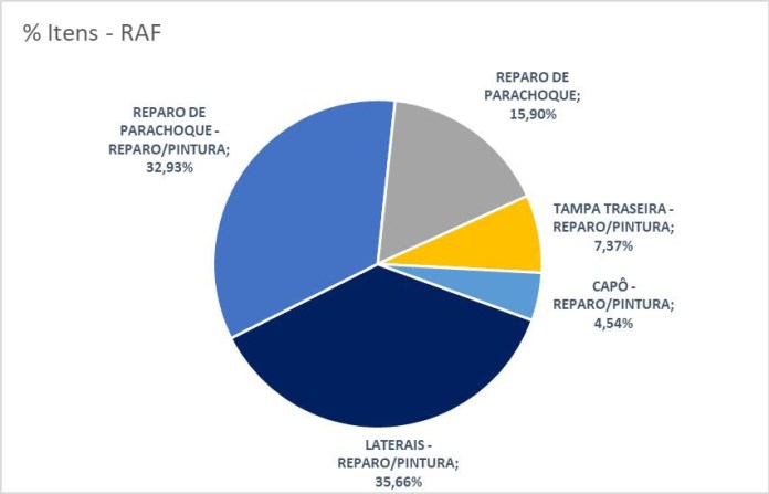 O serviço é oferecido há quase dois anos ao mercado. De acordo levantamento da empresa, os principais reparos acionados, de fevereiro de 2020 a fevereiro de 2021, foram referentes a reparos e pinturas nas laterais e para-choque dos veículos, o que representa 85% do volume.